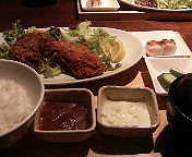 「ハンバーグカツ定食」。「?」と思って注文しました。「メンチカツ定食」があったかどうか記憶にありませんし、もしあったとして、食べ比べてみないとハンバーグカツの評価はできません(笑)。