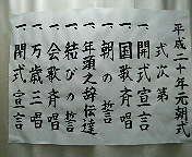式次第はご覧のとおり。実践倫理宏正会は一年365日、一日も休むことなく毎朝5時から6時に朝起会を開催しています。元旦だけは5時半過ぎには終わります。