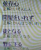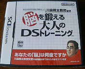 三男の「NINTENDO DS」で正月から、東北大学未来科学技術共同研究センター・川島隆太教授監修「脳を鍛える大人のDSトレーニング」( http://www.nintendo.co.jp/ds/andj/ )をやらせてもらっています。多岐にわたるトレーニングが盛られ実によくできたソフトです。川島先生の研究は「やすとログ」でも取り上げたことがあります(2004年6月16日付( http://218.44.129.190/200406.html )・同7月3日付( http://218.44.129.190/200407.html )・2007年9月22日付( http://www.max.hi-ho.ne.jp/yoshidayasuto/200709.html )「やすとログ」参照)。遂に、自分自身に試す時が来ました(笑)。