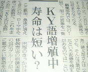 日曜日(3月30日)付「朝日新聞」に「KY語増殖中 寿命は短い?」という記事が載っていました。みなさんはどの程度ご存じでした?。吉田康人は「KY」だけでした(笑)。