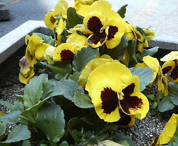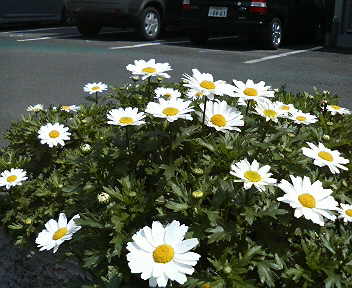 ウチの団地では5つの棟に囲まれた駐車場のあちこちに花壇が置かれています。ご担当のかたがたのご尽力で春のお花がいっぱいです。