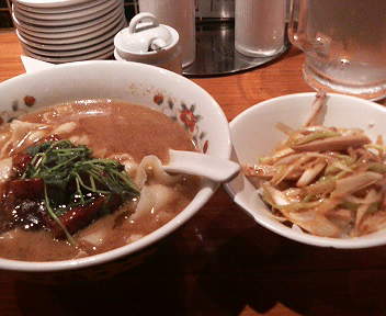 写真は「サラリーマン定食」。角煮がトッピングされた刀削麺とネギチャーシュー丼とのセットで1000円。ランチの定食としては高めですが、話のネタにできること(笑)、満腹感、そして、何よりも味を踏まえるとリーズナブルです。