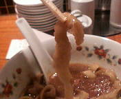 ご覧のとおりの麺。麺というよりすいとんを食べているようです。麺そのものの味を楽しめて嬉しい。