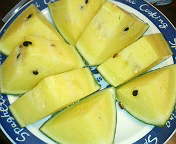 パイナップルでもメロンでもありません(笑)。松下農園で黄色く熟したスイカです。