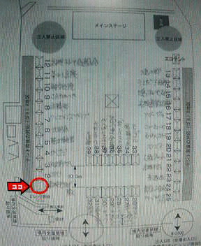 場所は写真でご覧いただけますようにステージからは遠い南東の角です。お待ちしていま〜す(^^)/~~~。