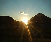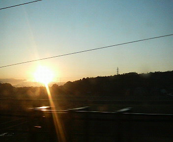 京都の今朝は地平線に雲が漂い日の出に幻想的な趣がありました。滋賀に入るとあちらこちらに霞が見られましたが日の出前後のほんの一時。