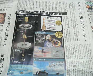 「宇宙エレベーター」(10月6日付「やすとログ」( http://www.max.hi-ho.ne.jp/yoshidayasuto/200810.html )参照)。