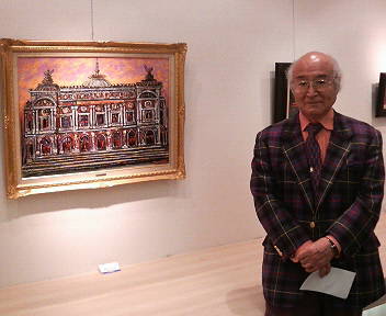 今回は、重厚なヨーロッパ建築や街並み、50回近い取材から強い印象を得た風景の油彩画、花の小品、そして、ペンによるスケッチ版画「淡彩の美」などが中心。