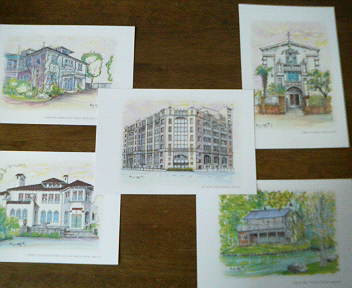 「W・Mヴォーリズ設計・建築シリーズW」です。小阪先生独特の画風に心が和みます。ありがとうございました。