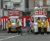 大勢の支持者に見送られて辻さんを乗せた街宣車が出発しました。