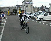 午後からは自転車で支持を訴えました。写真はお昼に自転車の練習をしているところ(笑)。