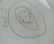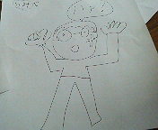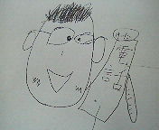 写真は携帯電話を掛けている吉田康人。よく描けてますね。