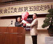 新支部長の小川先輩から宮地先輩へ「(支部長)6年間ありがとうございました」と感謝の花束。