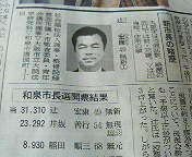 新・和泉市長の辻ひろみち(辻宏康)さんと電話で今朝がたお話ししましたところお元気そうでした。