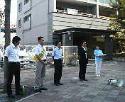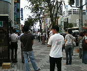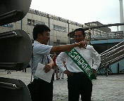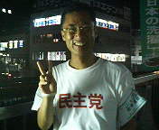 いっちゃんの街頭宣伝部隊なんだから当然、と申しますか、成り行きで、「民主党」Tシャツを着ることに。似合いますぅ?。