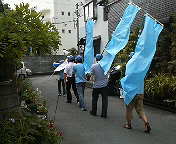 何がどう過酷でどんな運動をするかは企業秘密なので内緒ですが(笑)、とにかく、候補者はマイクをひたすら握りつづけ、街頭宣伝車のスタッフは走って走って走りつづけます。前々回選挙からの伝統です。内輪ではこれを「運動会」と呼んでいます(笑)。