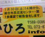先週末、東京出張からの帰り、JR高槻駅から直接、高槻市立総合市民交流センターへ向かいました。高槻市議会議員・北岡たかひろさんの市政報告会に参加してきました。「13:00からの開会だからてっきり大遅刻」と勘違いしてたんですが、到着した14:00からの開会が正解でたっぷり間に合いました(笑)。