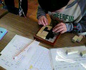 四つめは、「脳を元気にする計算 15番目の数」(数学で育ちあう会)( http://homepage2.nifty.com/suuikukai/ )。マス計算の一つの形態です。縦に足し算をしていくと最後の行はすべての列が同じ数値になります。