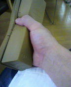これまではスポンジでしたが今後、器具(写真。最初は女性用の軽め)を使って握力を徐々に回復させていきます。