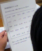 この日は同小学校で、ソフト・テニスとお習字教室も同時開催の予定でした。残念ながら、朝からの土砂降りでソフト・テニスが中止となり「脳」力測定とお習字教室だけになりました。