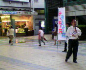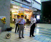 お世話になっているこの2人が先週木曜日、街頭宣伝で茨木と高槻を回るというのを聞いてお手伝いすることにしました。まずは、JR茨木駅前(写真)で合流。