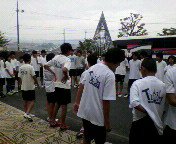 反応は様々です。もちろん、無視する子もいます。静かにお辞儀をしてくれる子、手を振ってくれる子、友達2〜3人とモジモジ連れだって「がんばってください(ニタッと友達どうしで顔を必ず見合わす)」とわざわざ言いにきてくれる子、吉田康人の後方に立って小声で真似をする子・・。みんな、自分の子供達のようでかわいい(笑)。