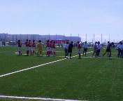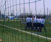 次の試合は「高槻市立第九中学校(三島3位)−富田林市立藤陽中学校(南河内1位)」。2中に負けた藤陽が2中に勝った9中を下しました。しかも、「藤陽 2−0 九中」だったため、勝ち点では2中、9中、藤陽がともに6(2勝1敗)で並んだものの、得失点差で藤陽6、9中5、2中5、ただし、総得点で9中が2中を1点上回ったため、この4チームによるリーグ戦は藤陽と9中が勝ちぬけ、2中は3位となってしまいました。